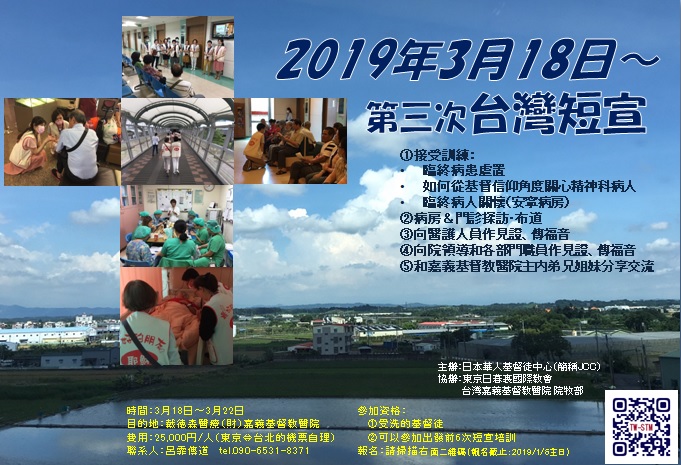 短宣:台湾,3/18(周一)—3/23(周六),担当:李建宏牧师。